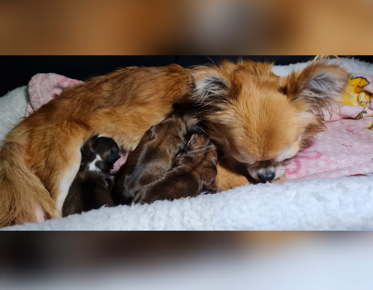 Welpis geht es sehr gut .Kimi ist ihren Welpen eine sehr liebvolle und fürsorgliche Mama .